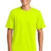 Balancing polyester performance with cotton comfort, this hardworking tee constructed from recycled materials has a rich, soft feel. 4.1-ounce, 65/35 recycled polyester/cotton Moisture-wicking Odor-resistant Stain release Reinforced shoulder seams for durability Double-needle coverstitching on hem Tear-away label