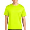 Lightweight and breathable for the toughest workouts, this tee features moisture wicking and stain release. 3.5-ounce, 100% recycled polyester Moisture-wicking Odor-resistant Stain release Reinforced shoulder seams for durability Double-needle coverstitching on neck and hem Tear-away label