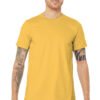 Retail fit Tear-away label Side seamed Shoulder taping Solid Colors: 4.2-ounce, 100% Airlume combed and ring spun cotton, 32 singles Ash: 99/1 Airlume combed and ring spun cotton/poly Athletic Heather/Black Heather: 90/10 Airlume combed and ring spun cotton/poly Heather CVC/Blend Colors: 52/48 Airlume combed and ring spun cotton/poly Prism: 99/1 Airlume combed and ring spun cotton/poly