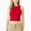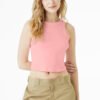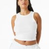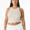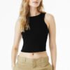 Stretch fit High neck Racerback 1×1 micro rib Side seamed Mid-length Tear-away label 5.4-ounce, 52/48 Airlume combed and ring spun cotton/polyester, 32 singles Athletic Heather: 90/10 Airlume combed and ring spun cotton/polyester