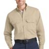 Arc Rating ATPV 8.6 calories/cm 2 FABRIC Flame-resistant EXCEL FR ® ComforTouch ® 7-ounce, 88/12 cotton/nylon FEATURES Industrial laundry friendly. Banded, topstitched, button-down collar. Placket front with button closure. Tailored sleeve plackets. Topstitched cuffs with button closures. STANDARDS NFPA ® 2112 compliant