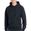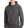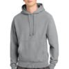 12-ounce, 82/18 cotton/poly fleece Reverse Weave cross-grain cut resists shrinkage 1×1 rib knit side panels, sleeve cuffs and hem Two-ply hood with dyed-to-match drawcords Front pouch pocket Embroidered Champion ‘C’ logo at left cuff Woven back neck label