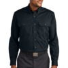 Built from durable ripstop, this rugged shirt looks professional and performs with grit throughout any tough job. 5-ounce, 60/40 polyester/cotton ripstop Stain release Reinforced triple-needle stitching Button-down collar Dyed-to-match buttons Double button-through chest pockets Left pocket pen slot Back pleats Rounded adjustable cuffs Rental-friendly
