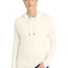 A vintage-inspired hoodie for casual comfort. 4.5-ounce (153 GSM) 70/30 combed ring spun cotton/polyester French terry, 40 singles Tear-away label Back neck tape Unlined hood Cowl neck Dyed-to-match drawcords with metal tips and grommets Pieced hem with merrow edge