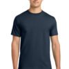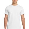 6-ounce, 100% ring spun cotton 90/10 ring spun cotton/poly (Sport Grey) 50/50 ring spun cotton/poly (Graphite Heather) Seamless non-topstitched 7/8ÿ¿ neck Taped neck and shoulders Recycled, high-performing black tear-away label Double-needle sleeves and hem Please note: This product is transitioning from tear-away labels to recycled, high-performing black tear-away labels. Your order may contain a combination of both labels.