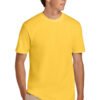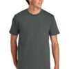 5.3-ounce, 100% ring spun cotton 50/50 ring spun cotton/polyester (Graphite Heather) 90/10 ring spun cotton/polyester (Ring Spun Sport Grey) Softstyle’s high stitch density fabric offers a smooth printing surface Taped neck and shoulders Recycled, high-performing black tear-away label Classic width, rib collar Modern classic fit, seamless body