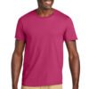 4.7-ounce, 100% cotton jersey 60/40 CVC cotton/polyester (Heathers, Neon Pink, Safety Green, Safety Orange) 90/10 CVC cotton/polyester (Athletic Heather) 98/2 CVC cotton/polyester (Ash) Seamless 1×1 rib knit collar with clean neckline Shoulder to shoulder taping Classic fit Tear-away label