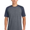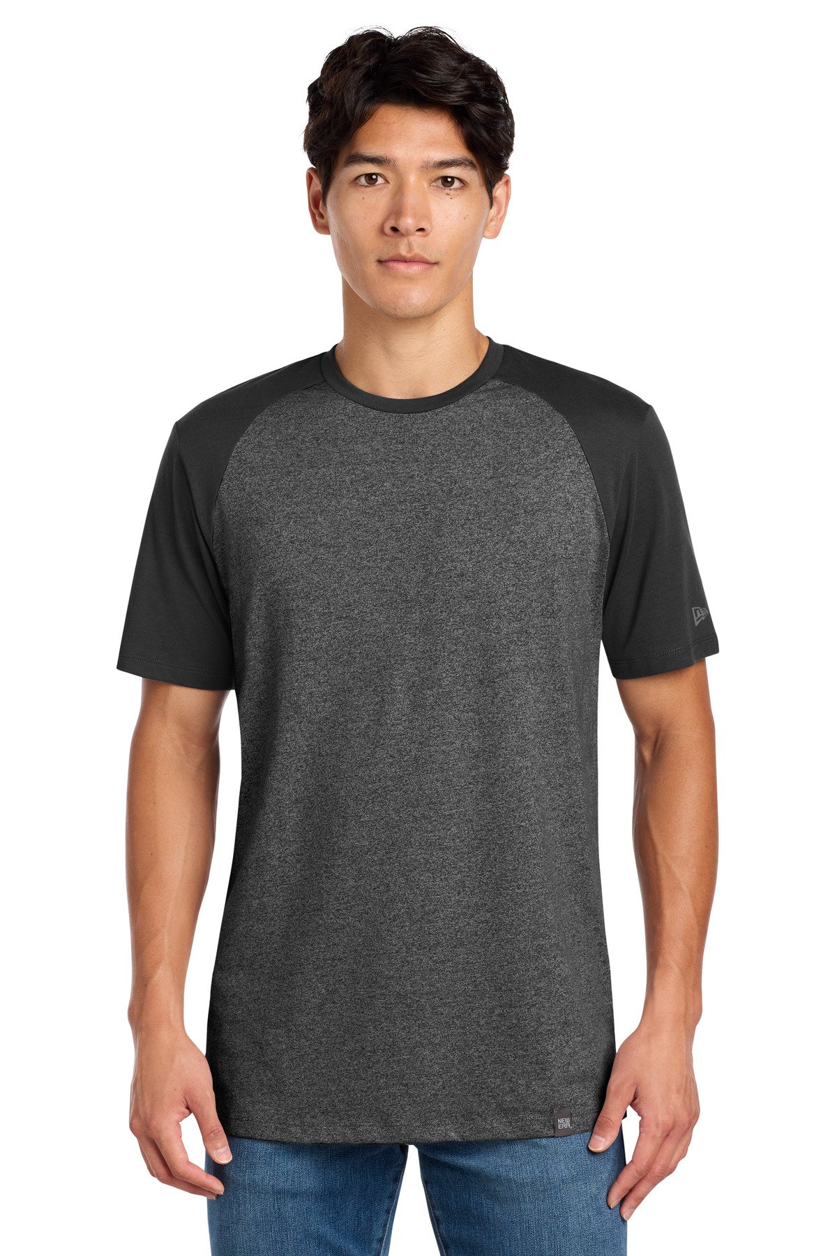This colorblock tee fuses unbelievable softness with heritage-inspired comfort. 4.4-ounce, 60/40 ring spun combed cotton/poly, 30 singles Heat transfer label for tag-free comfort Solid color back Faux raglan sleeves Heat transfer New Era flag logo on left sleeve Woven New Era badge at hem Side vents