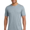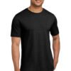 3.5-ounce, 65/35 poly/combed ring spun cotton, 40 singles Solid colors: Black, White, Shiraz, Smoked Paprika and Stonewash Green (the remaining colors are heathers) 1×1 rib knit neck Double-needle edge stitch at neck Shoulder to shoulder taping Satin label Side seamed