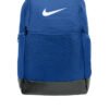 This versatile backpack is ideal for packing everything you need to get you through a busy training day or when you’re away from your locker, gym or home. 100% recycled polyester dobby Back panel and shoulder straps are padded for comfortable carrying Multiple pockets provide organized small-item storage Zippered main compartment offers spacious and secure storage Plush-lined, zippered pocket for headphones or electronics Padded sleeve safely stores a laptop A water-resistant coating on bottom panel helps keep gear dry Contrast Swoosh design trademark Laptop sleeve fits most 15′ laptops Dimensions: 18’h x 12’w x 7’d; Approx. 1,465 cubic inches Note: Bags not intended for use by children 12 and under.
