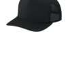 This cap combines performance features with the look of a traditional trucker. 94/6 polyester/spandex micro ripstop 100% polyester brushed twill underbill Gusty grey underbill Durable water repellent (DWR) finish helps keep cap afloat in water 5-panel with curved bill Moisture-wicking sweatband and front panel lining Breathable oval pattern perforation in mid and back panels Structured Low-profile 7-position adjustable snapback closure Matte black silicone O icon at left of keyhole