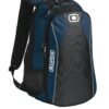 This pack protects your laptop, caters to your professional needs and delivers bold OGIO style.| 600D poly/420D dobby poly Top-entry padded laptop compartment Fleece-lined valuables and digital media pocket Deluxe organization panel Dual side beverage/accessory holsters Ergonomic adjustable shoulder straps Dimensions: 19.25’h x 13’w x 9.5’d Capacity: 1,700 cu. in./28 L Weight: 1.45 lbs./0.66kg Laptop sleeve: 15.5’h x 10.5’w x 1.5’d; fits most 15′ laptops Note: Bags not intended for use by children 12 and under. Includes a California Prop 65 and social responsibility hangtag.