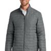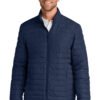 A beautiful brick pattern, water-resistance and recycled materials come together in this sustainable jacket. 100% recycled ripstop shell 3.5-ounce, 100% recycled polyester polyfill insulation This product’s carbon footprint has been measured and reduced through a combination of preferred materials and investing in carbon offset projects though the ClimeCo Certified Product ™ Program Zip-through cadet collar Full-length interior storm flap Interior zippered chest pocket Hidden zippered hand pockets Elastic binding at cuffs Adjustable locking drawcord hem Port Pocket ™ for decoration access Water protection method: Durable water-repellent (DWR) finish A C-FREE ® Product