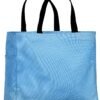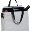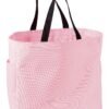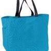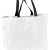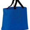 This durable tote comes in a rainbow of colors and is a tremendous value. | 600 denier polyester canvas Large main section with small interior self-fabric pockets Exterior side pocket Web handles Dimensions: 12’h x 12’w x 6.5’d, Approx. 936 cubic inches Note: Bags not intended for use by children 12 and under. Includes a California Prop 65 and social responsibility hangtag.