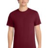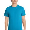 A reliable choice for comfort, softness and durability. 5.5-ounce, 50/50 cotton/poly Made with up to 5% recycled polyester from plastic bottles (Except Ash and Athletic Heather) 1×1 rib knit collar Shoulder to shoulder back neck tape Removable tag for comfort and relabeling Due to the nature of 50/50 cotton/polyester neon fabrics, special care must be taken throughout the printing process.