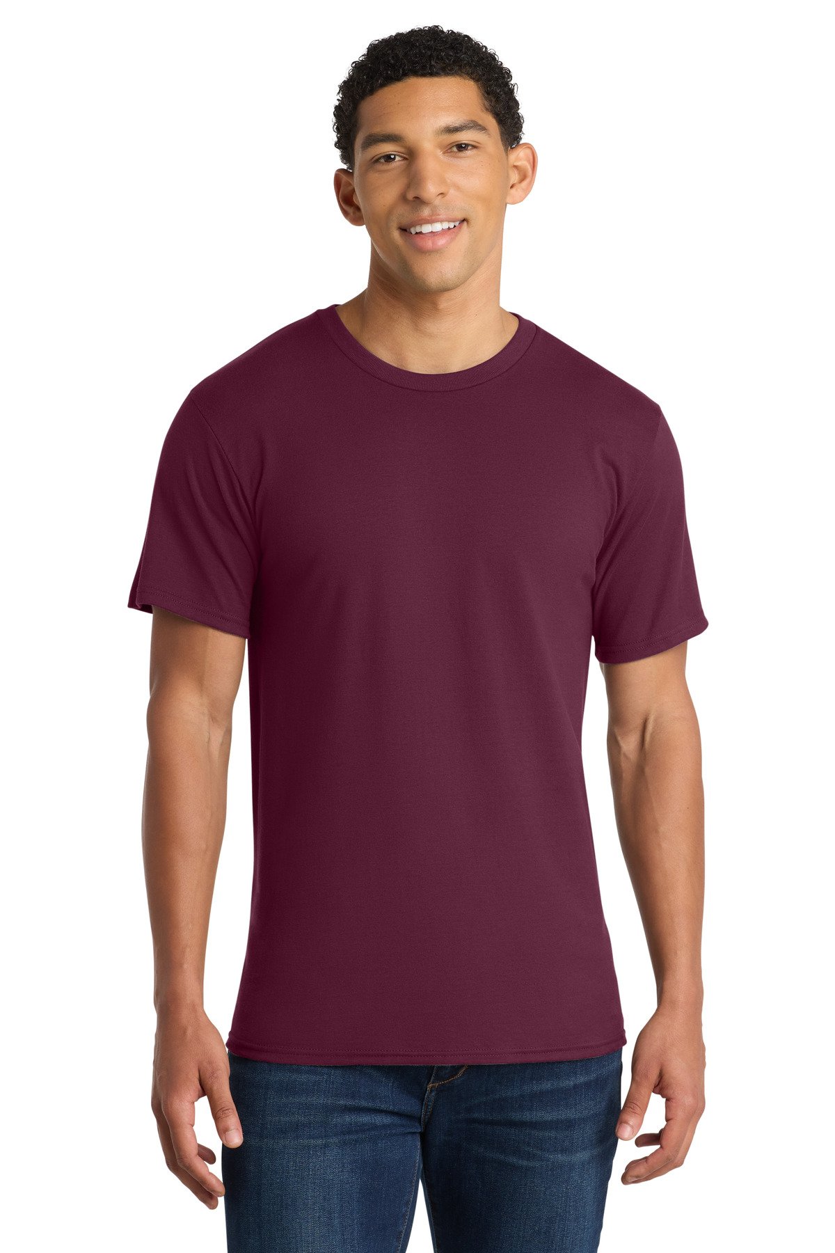 Soon to be your favorite tee. Discover the extra soft difference 100% ring spun cotton makes in this finer, smooth-faced and durable must-have tee that features 1-inch extra length in the body. | 5.5-ounce, 100% ring spun cotton 90/10 ring spun cotton/poly (Athletic Heather) Removable tag for comfort and relabeling