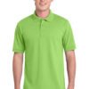 With an easy-to-care-for blend and a stain-release finish, this comfortable polo is a real value. | 5.5-ounce, 50/50 cotton/poly Made with up to 5% recycled polyester from plastic bottles Stain-release finish 1×1 rib knit collar and cuffs 3-button placket with dyed-to-match buttons Double-needle hem Due to the nature of 50/50 cotton/polyester neon fabrics, special care must be taken throughout the printing process.