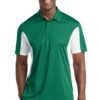 Smooth, snag-resistant and moisture-wicking micropique with colorblock panels. | 3.8-ounce, 100% polyester tricot Snag-resistant Moisture-wicking Double-needle stitching throughout Tag-free label Taped neck 3-button placket with dyed-to-match buttons Colorblocking at panels on sides, sleeves and back collar Set-in, open hem sleeves Side vents * Due to the nature of 100% polyester performance fabrics, special care must be taken throughout the screen printing process.